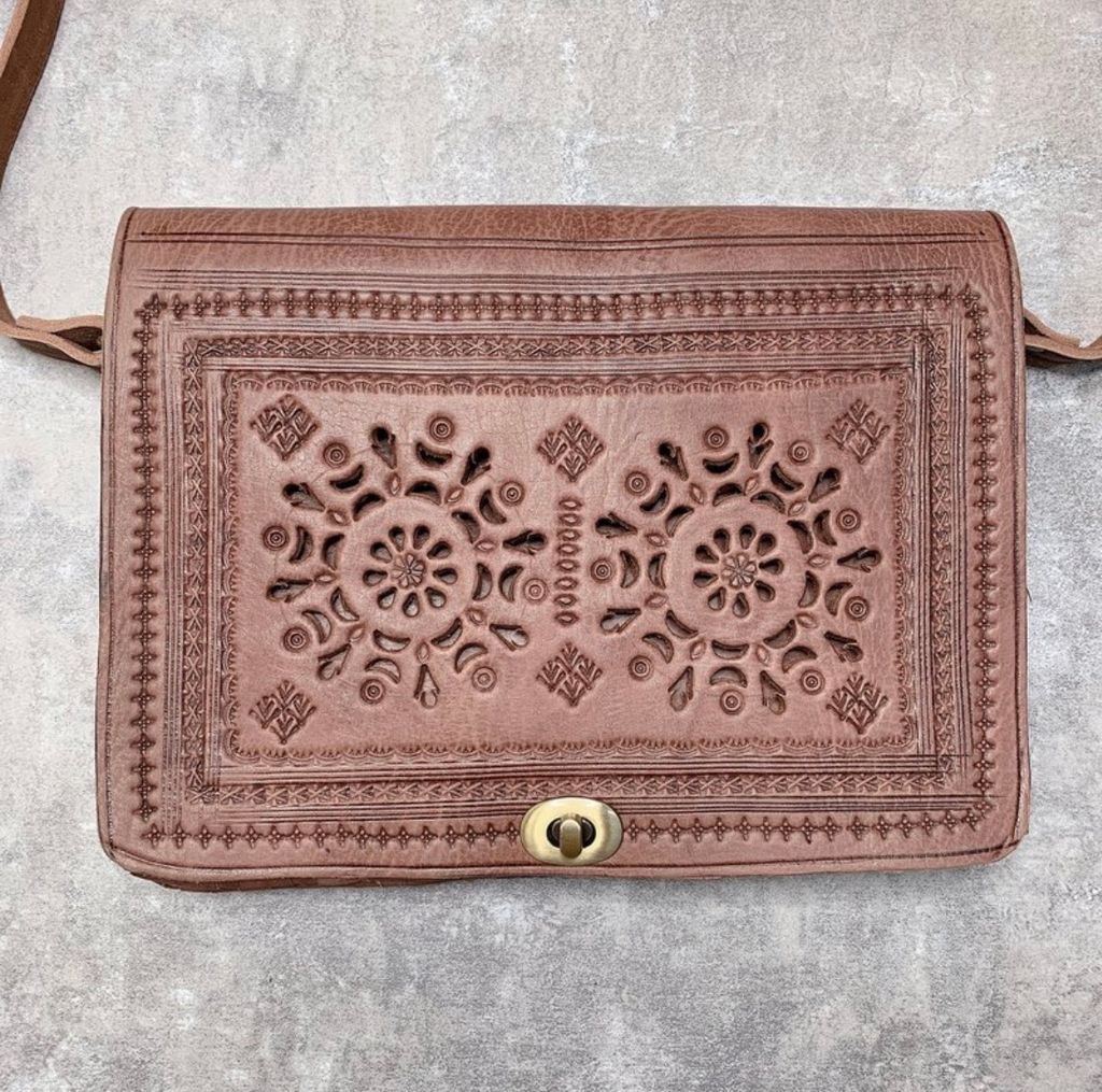 靈感來自於摩洛哥建築牆面設計,伊斯蘭邏輯下的藝術展演,幾何圖形的排列組合,包包掀蓋可見到伊斯蘭圖騰的光影投射。精巧又帶有摩式海派粗曠的皮革雕花工藝,讓剛硬的皮件柔雅了起來。